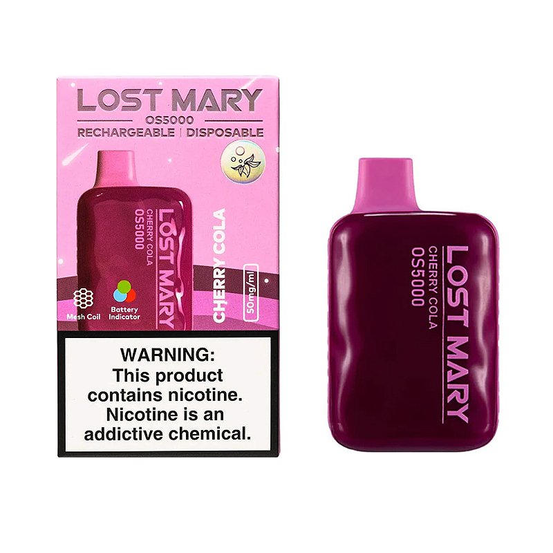 Construído com um design simples e minimalista, o pod descartável Lost Mary da linha Elfbar oferece a qualidade de até 5000 puffs, acompanhado de 13ml de juice, 5% de nicotina, bateria recarregável de 650mAh e o delicioso sabor de cereja com coca.