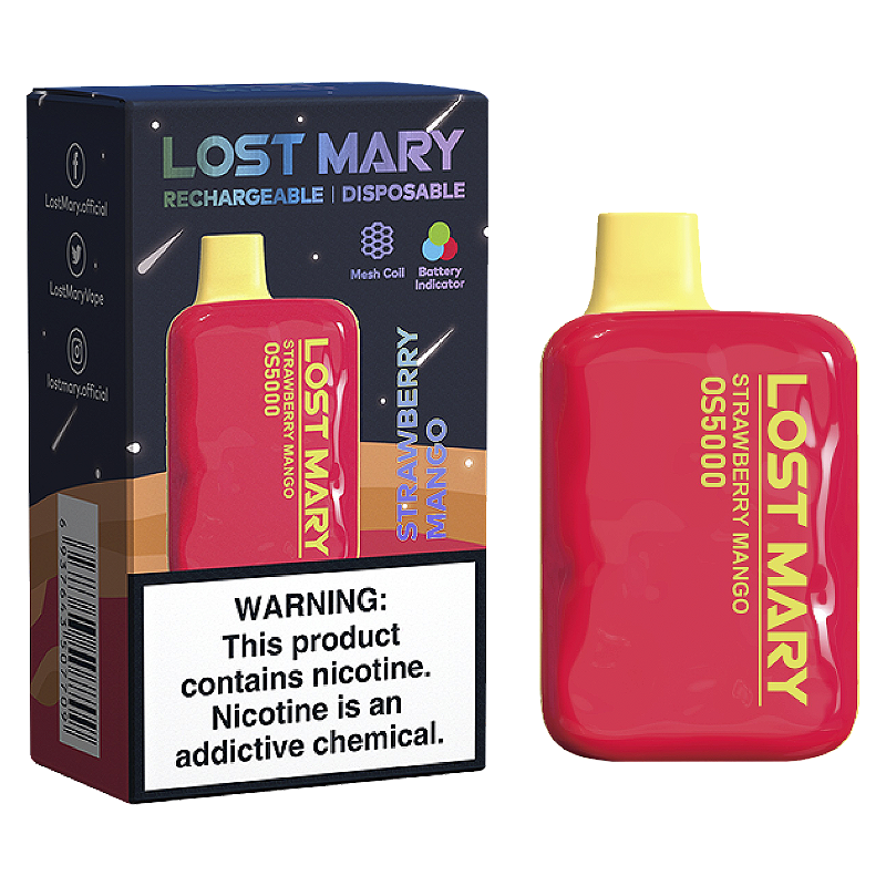 Construído com um design simples e minimalista, o pod descartável Lost Mary da linha Elfbar oferece a qualidade de até 5000 puffs, acompanhado de 13ml de juice, 5% de nicotina, bateria recarregável de 650mAh e o sabor delicioso das frutas de Morango e Manga.