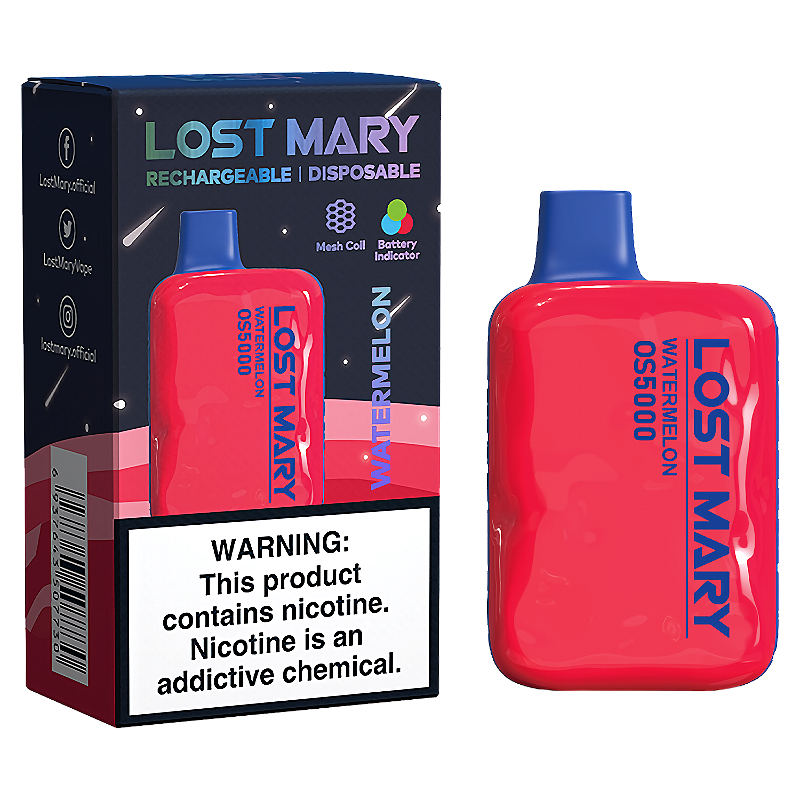 Construído com um design simples e minimalista, o pod descartável Lost Mary da linha Elfbar oferece a qualidade de até 5000 puffs, acompanhado de 13ml de juice, 5% de nicotina, bateria recarregável de 650mAh e o sabor da fruta de Melancia.